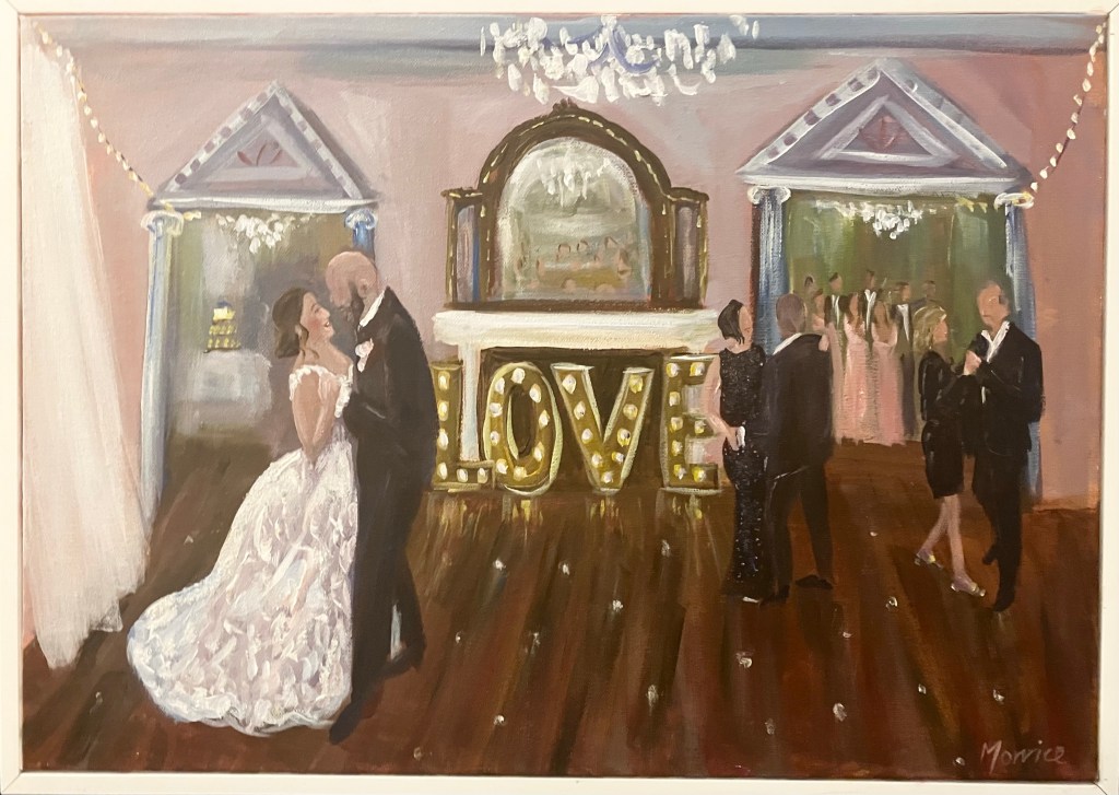 I was delighted to be invited to attend their day and create for them a live wedding painting of their first dance.