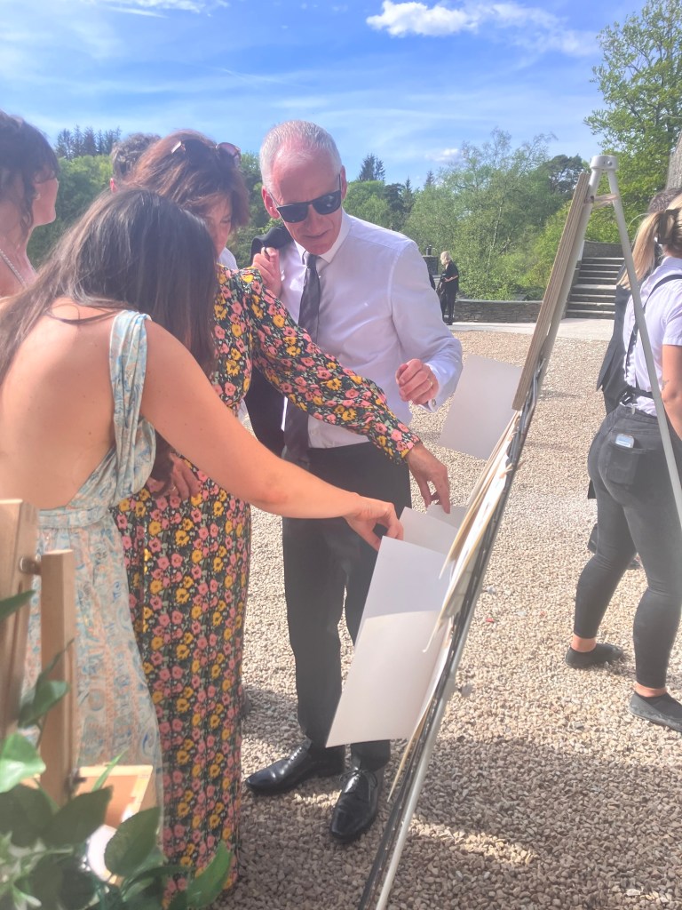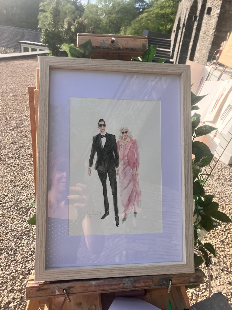 The Lilymere Estate provided a breathtaking backdrop for the celebration, with its rolling landscapes and elegant architecture. As guests mingled and shared in the joy and sunshine, I set up my easel, ready to capture some live illustrations.