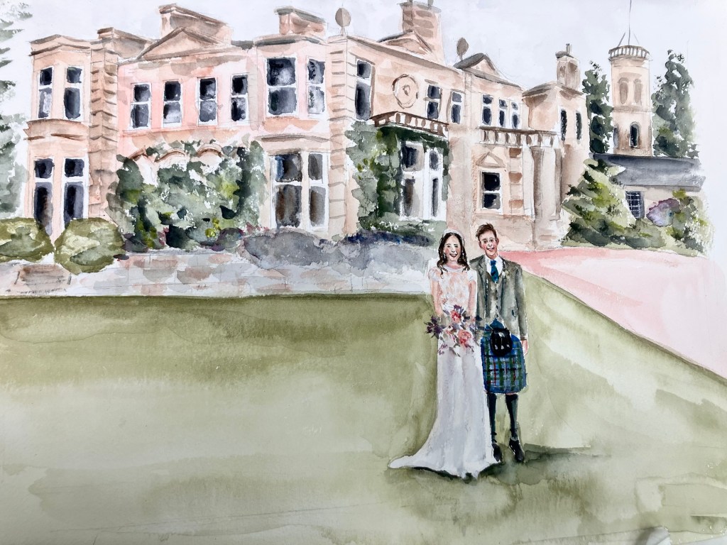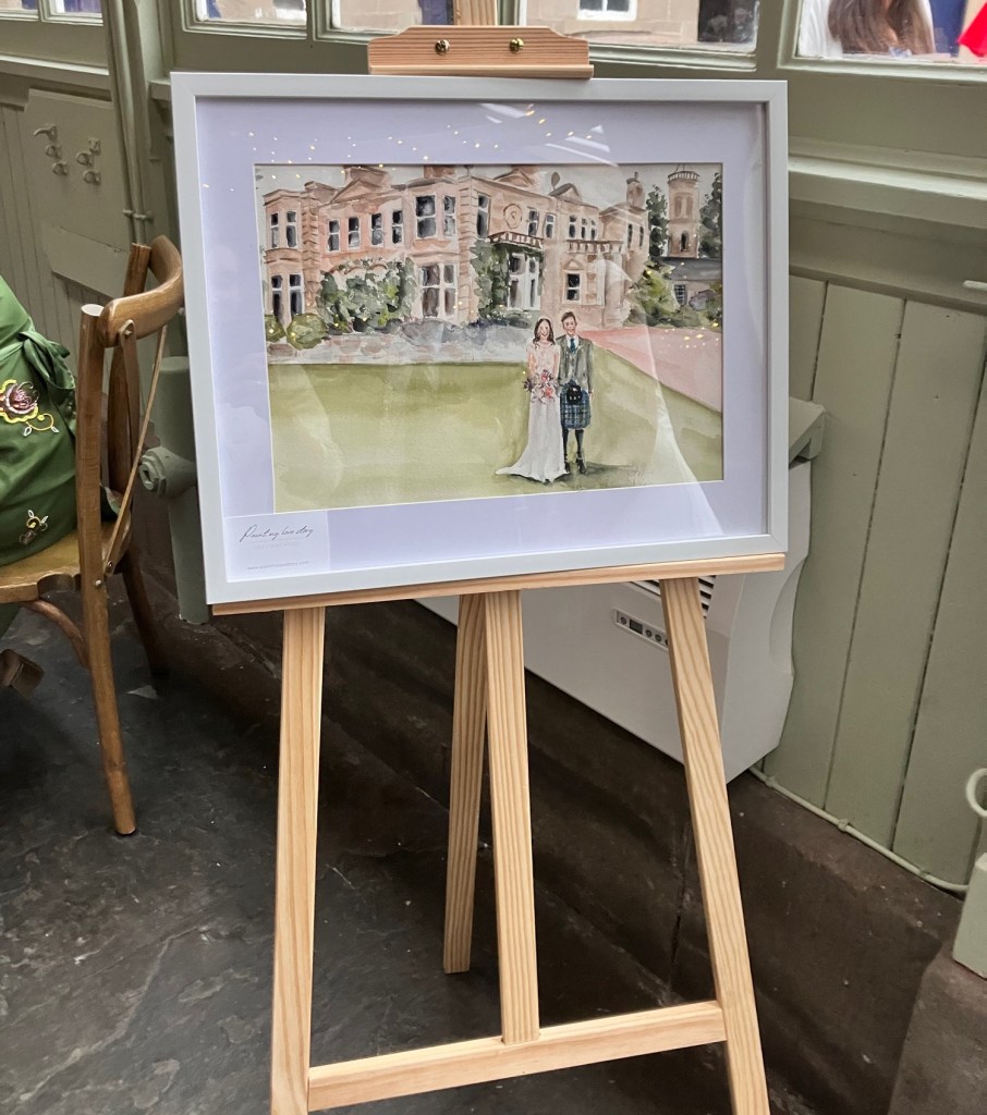 I did feel like a bit of a gatecrasher but Emma and her lovely family were so welcoming and happy to receive her paintings to at the end of the night . The watercolour painting was framed up and put in display the wedding reception in the evening.