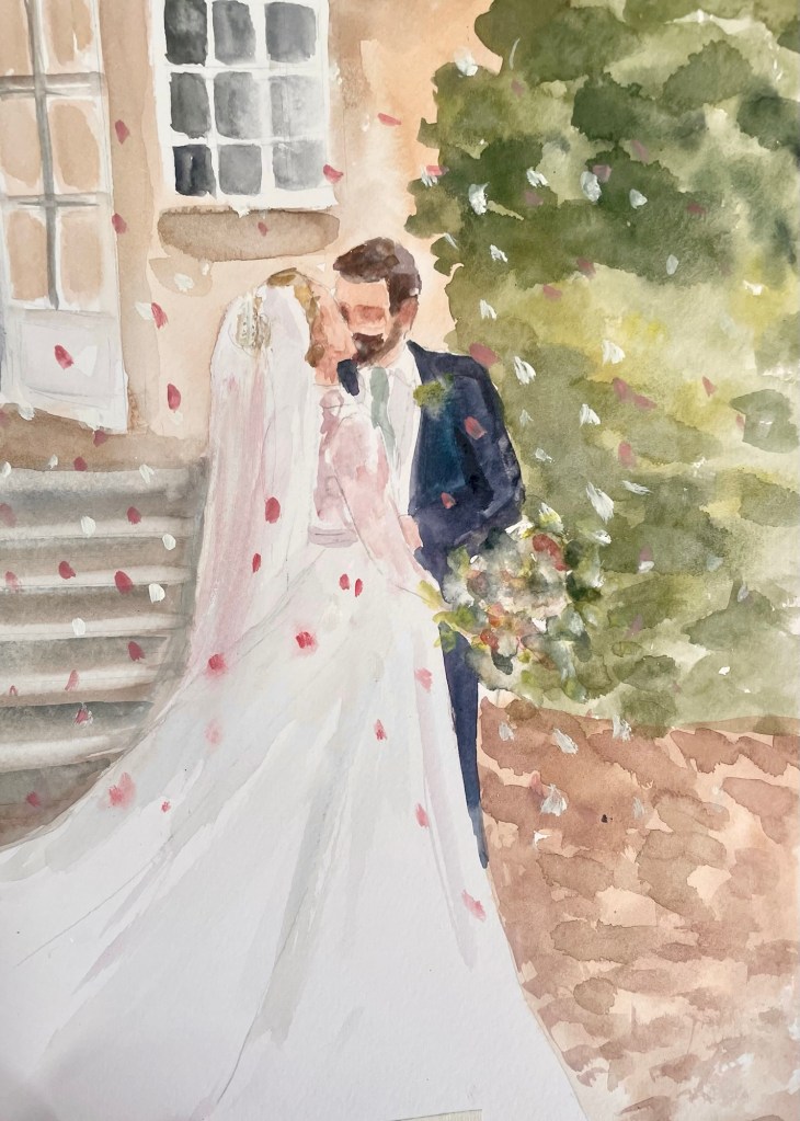 As a live wedding painter, I have painted live at weddings since 2020 and have had the privilege to serve all over the UK in lovely places, from castles to cowsheds.