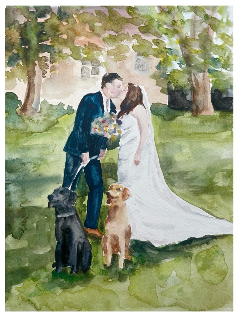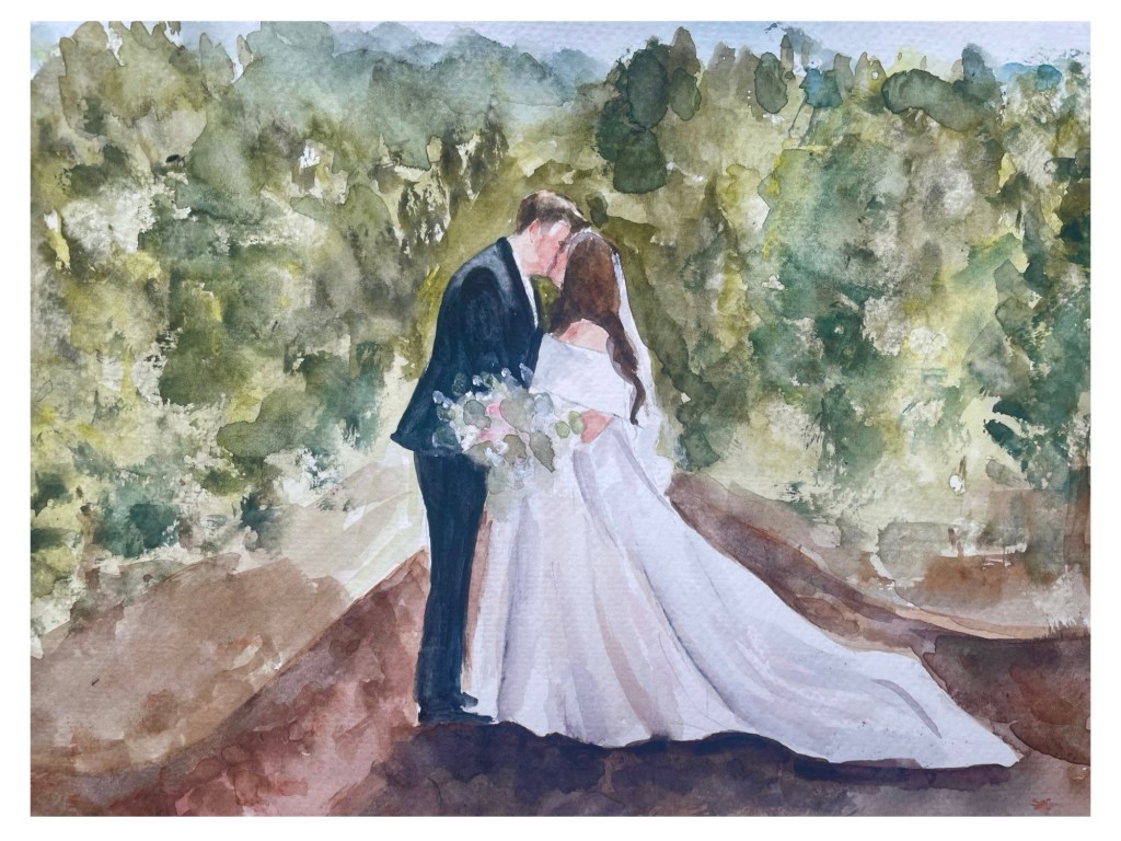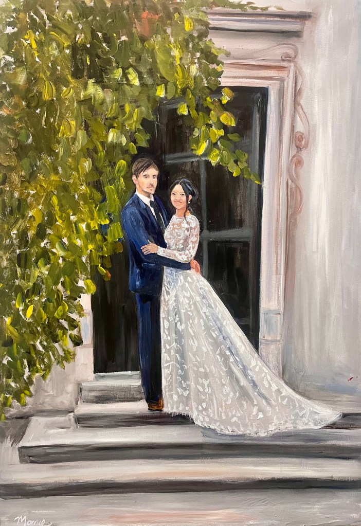 If your painting is larger, I have likely taken it away to my studio for refinements. My current processing time is 6 weeks to delivery to the couple.