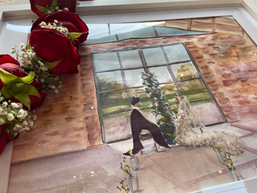 Yes, you chose a scene of your choice for the day. Do you want a painting to focus just on the bride and the groom and venue ? Or do you want to include your entire family and bridal party? The first kiss? Last dance ? The reception dancing?I’ll create a painting that matches your vision.